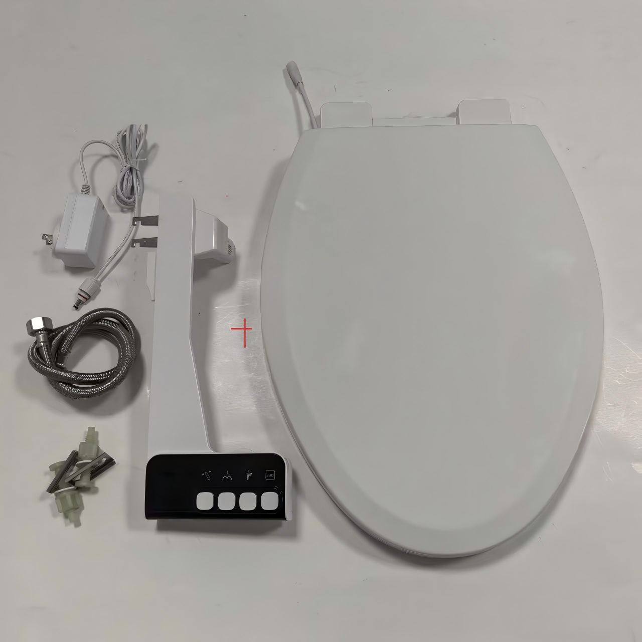 A cheap toilet seat with bidet attachment featuring a one-click quick-release function.